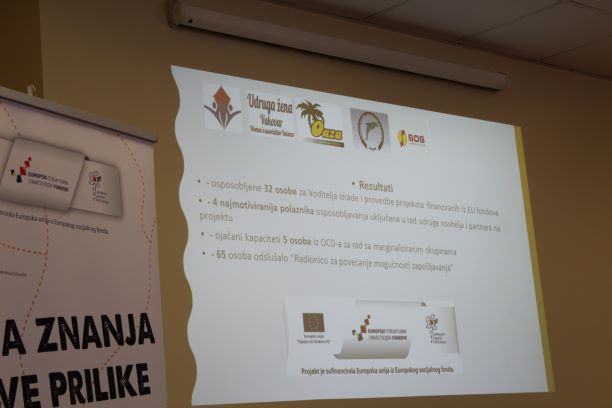 Jučer, 29. siječnja 2020. godine s početkom u 12 sati u svečanoj dvorani Bauer Hotela Lava u Vukovaru predstavljen je projekt „Nova znanja – nove prilike“ kodnog broja UP. 02.1.1.06.0082 iz poziva Podrška socijalnom uključivanju i zapošljavanju marginaliziranih osoba koji provode Udruga žena Vukovar sa partnerima Mirovnom grupom Oaza Beli Manastir, Centrom za podršku i razvoj civilnog društva Delfin i S.O.S. savjetovanje, osnaživanje, suradnja.