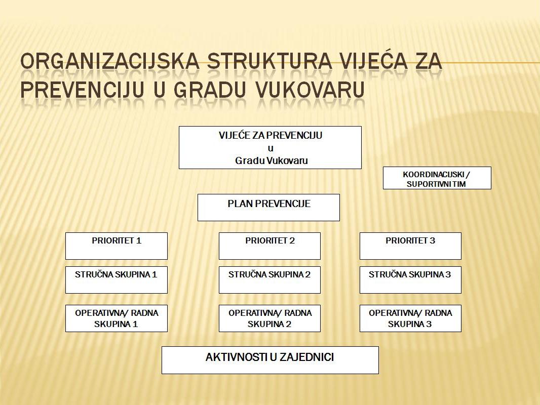 djeluje pri gradskoj upravi kao koordinacijsko tijelo koje okuplja predstavnike/ce različitih institucija, organizacija civilnog društva i građana/ki koji suradnički rade na ciljevima razvoja prevencije kriminaliteta i poboljšanja kvalitete života na području Grada Vukovara te na većoj sigurnosti građana i građanki, materijalnih dobara i zajednice u cjelini.
