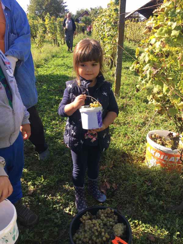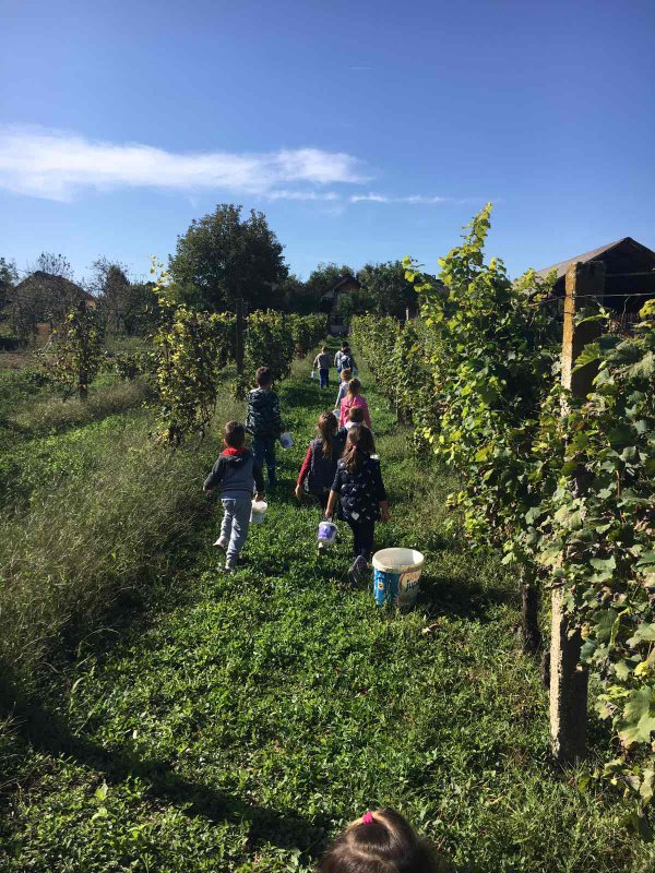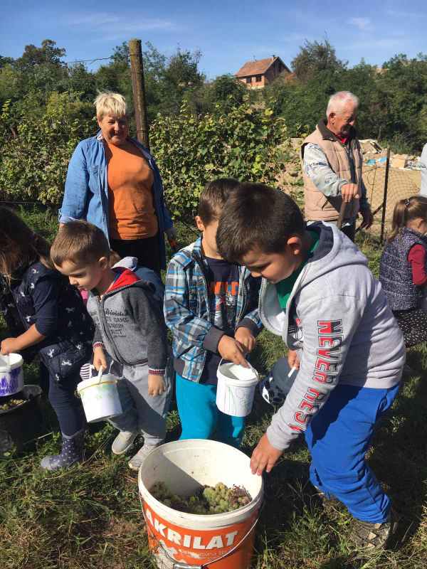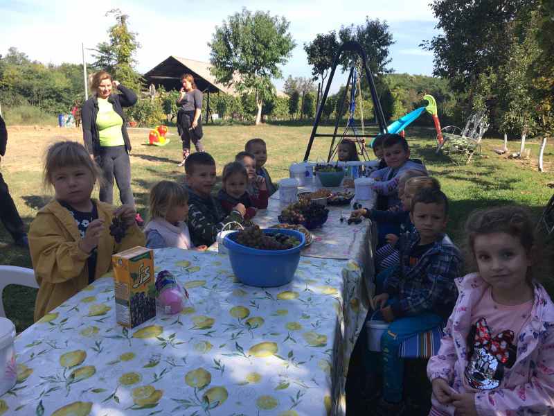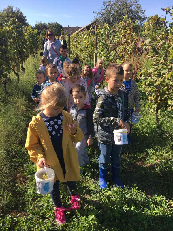 Na poziv djeda djevojčice Julije djeca skupine Zvjezdice (PO Sotin) uputila su se sa svojim odgojiteljicama Anitom i Dubravkom u obližnji vinograd, u berbu grožđa.