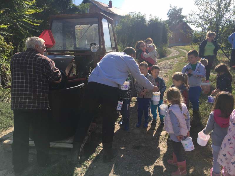 Dan prije pripremili smo i ukrasili kantice koje nam trebaju u vinogradu. Julija je pomagala prijateljima i uputila ih kako grožđe treba rezati i da grožđe treba potom donijeti do muljače gdje je početak pretvaranja grožđa u sok, a potom u vino.