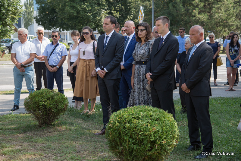 Vijenac je položilo i svijeću zapalila delegacija Grada Vukovara na čelu s gradonačelnikom Ivanom Penavom, zamjenika župana Vukovarsko-srijemske županije Damir Barna te ministar uprave Ivan Malenica.
