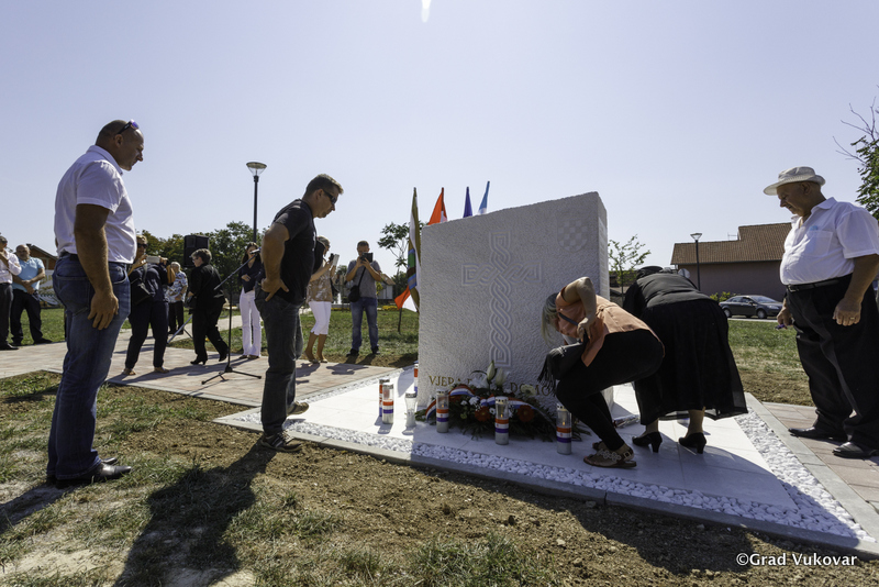 Spomen-obilježje naziva „Vjera, djela, domovina“ djelo je Ante Bogdanovića - klesarskog obrta „Forma-klesarstvo“ Omiš, a svečano otkrivanje spomenika u zajedničkoj je organizaciji Udruge hrvatskih ratnih vojnih invalida Domovinskog rata Omiš, Grada Omiša i Grada Vukovara.