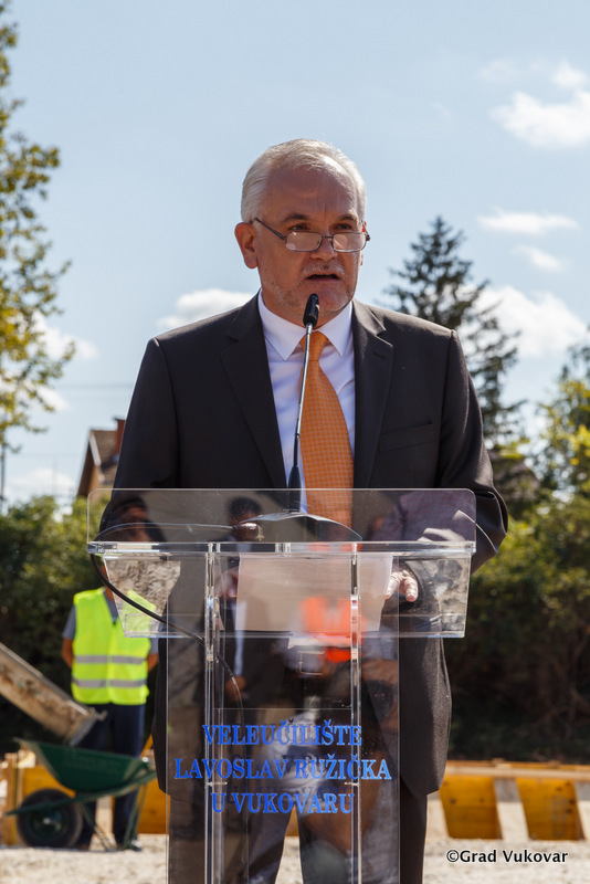 Skupa s gradonačelnikom Penavom kamen temeljac zajedničkim su snagama položili predstavnik studenata Veleučilišta Lavoslava Ružičke Luka Čačić, dekan Mirko Smoljić, državni tajnik u Ministarstvu znanosti i obrazovanja Matko Glunčić, predsjednica Odbora za obrazovanje, znanost i kulturu Hrvatskog sabora Vesna Bedeković te zamjenik Vukovarsko-srijemskoga župana Damir Barna.