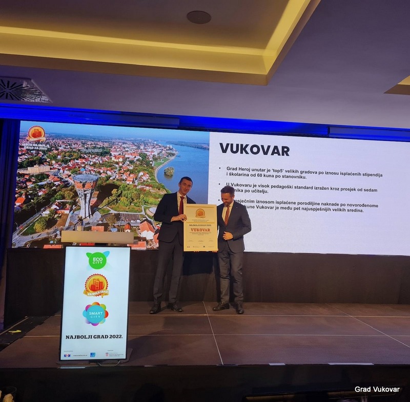 U konkurenciji velikih gradova i gradova sjedišta županija, a kategoriji obrazovanja, mladih, demografije i socijalne politike Vukovar je proglašen Najboljim gradom u Republici Hrvatskoj!