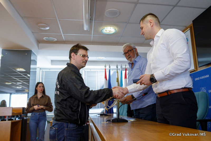 Tim povodom u gradskoj vijećnici zamjenik gradonačelnika Filip Sušac, pročelnik Upravnog odjela za društvene djelatnosti Grada Vukovara Josip Paloš te stručni suradnik za socijalnu skrb Dalibor Žigić ugostili su predsjednika Udruge tjelesnih invalida TOMS Ivicu Bašića, a ujedno je potpisan i Ugovor o donaciji s dvije vukovarske obitelji, Radošević i Domić.