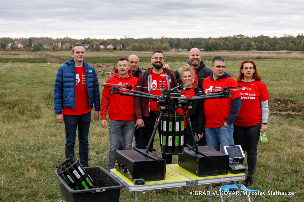 Danas je provedena peta akcija pošumljavanjem dronom na prostoru tzv. potkove i sadnje drveća u park-šumi Adica kojima se pridružio zamjenik gradonačelnika Filip Sušac.
