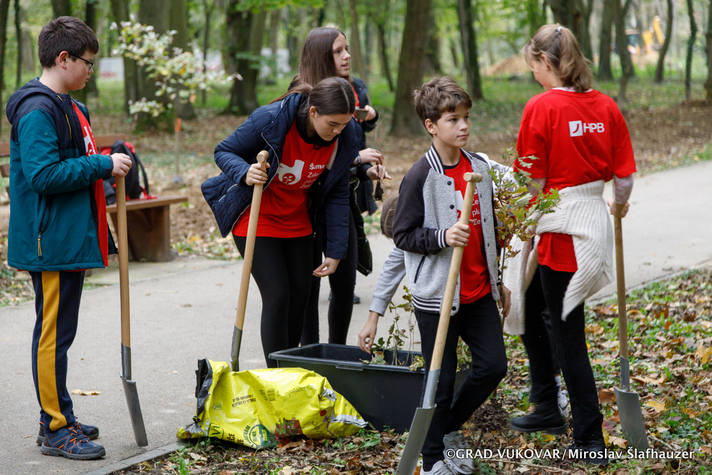 U sadnji su sudjelovali i učenici Osnovne škole Blago Zadro te predstavnici Hrvatske poštanske banke koji su ovoga puta financirali sadnju.
