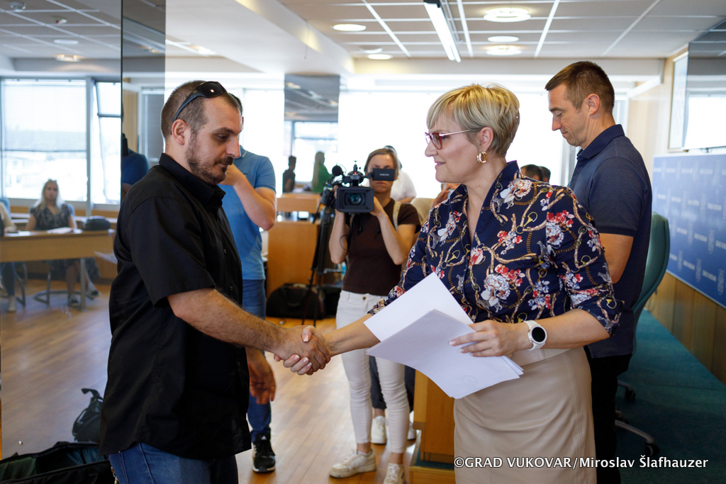 Ugovore su dodijelili gradonačelnik Ivan Penava i predstojnica Hrvatskog zavoda za zapošljavanje, Područnog ureda Vukovar Jasna Kolar, a dodijeli su nazočili i zamjenik gradonačelnika Filip Sušac te pročelnik Upravnog odjela za komunalno gospodarstvo i graditeljstvo Dražen Čulig.