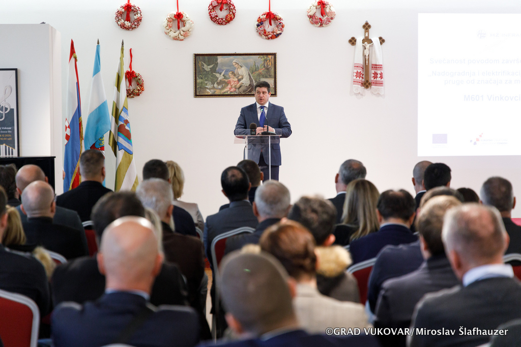 Okupljeni su obišli željeznički kolodvor Vukovar – Borovo Naselje, dočekali vlak, a zatim je upriličena svečanost u povodu završetka projekta „Nadogradnja i elektrifikacija željezničke pruge Vinkovci – Vukovar“ koja je upriličena u Gradskom muzeju