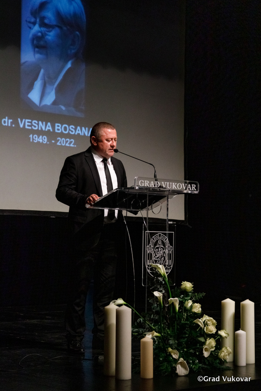 Oprostivši se od doktorice Bosanac prigodne riječi uputili su ravnatelj NMB Vukovar Anto Blažanović, gradonačelnik grada Vukovara Ivan Penava, župan Vukovarsko-srijemske županije Damir Dekanić te ministar hrvatskih branitelja Tomo Medved.