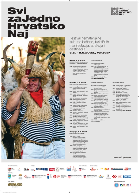 Nakon proslave Dana Grada Vukovara, od 06. do 08. svibnja u Vukovar stiže 4. po redu festival nematerijalne kulturne baštine, turističkih manifestacija, atrakcija i destinacija SVI zaJEDNO HRVATSKO NAJ, koje će u 3 dana u naš grad donijeti pregršt sadržaja, a koji ove godine ima i međunarodni karakter jer mu je država partner Izrael.