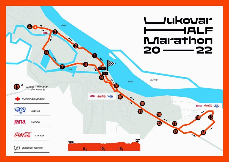 Za potrebe Vukovarskog polumaratona biti će zatvorene sljedeće ulice: Josipa Jurja Strossmayera, Parobrodarska ulica, Dunavska šetnica, Županijska ulica kod Luke Vukovar, Priljevo ulica, Kudeljarska ulica, Ulica Matice hrvatske, Ulica 204. vukovarske brigade, Ulica kardinala Alojzija Stepinca, Frankopanska ulica, Ulica Stjepana Radića, Trg Slavija, Ulica bana Josipa Jelačića do skretanja iza salaša Goldschmidt, Ulica Šamac, Samostanska ulica, Ulica Stjepana Radića, Trg hrvatskih branitelja, Ulica dr. Franje Tuđmana.
