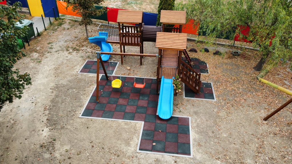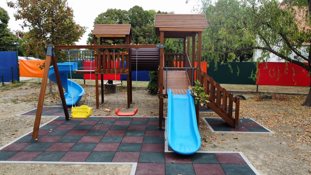 Najmlađi Vukovarci u svom su vrtiću dobili tri nova igrala s gumenim antistres podlogama koja sadrže kućicu sa stolom, spiralni tobogan, penjalicu, ljuljačke, toranj s krovom, edukativne igre, stepenice s rukohvatom i dr.