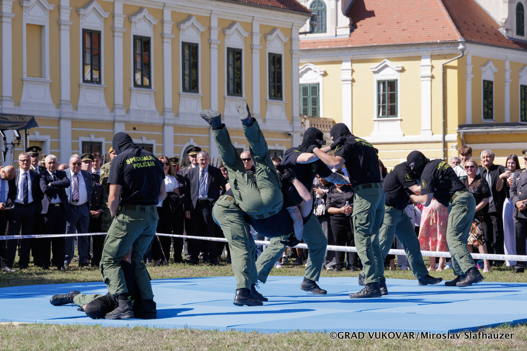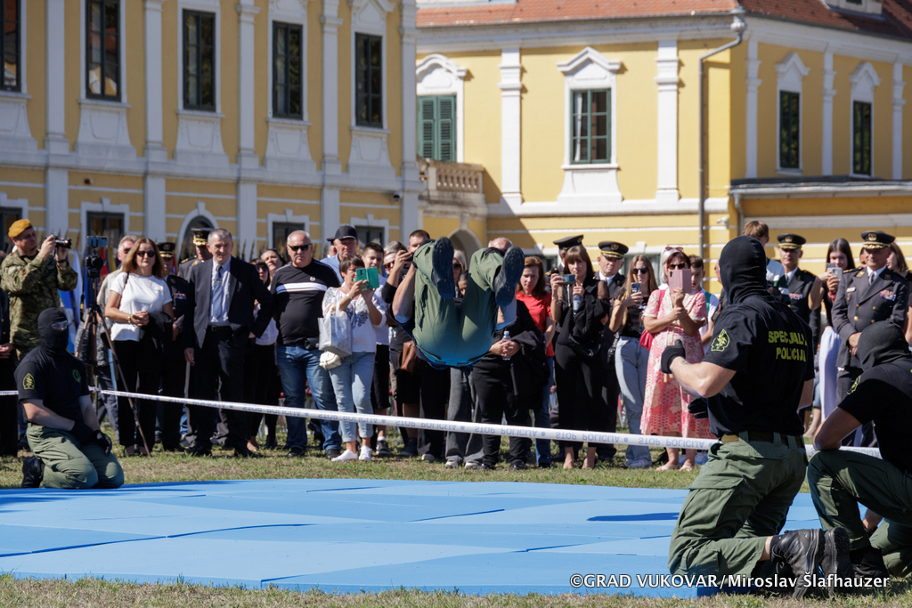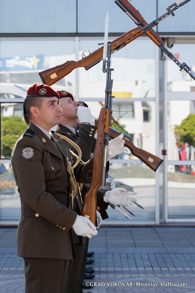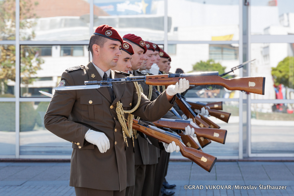 Na središnjem gradskom Trgu Republike Hrvatske građani i posjetitelji Vukovara mogli su pogledati prikaz vojno-akrobatske vježbe Počasno-zaštitne bojne.
