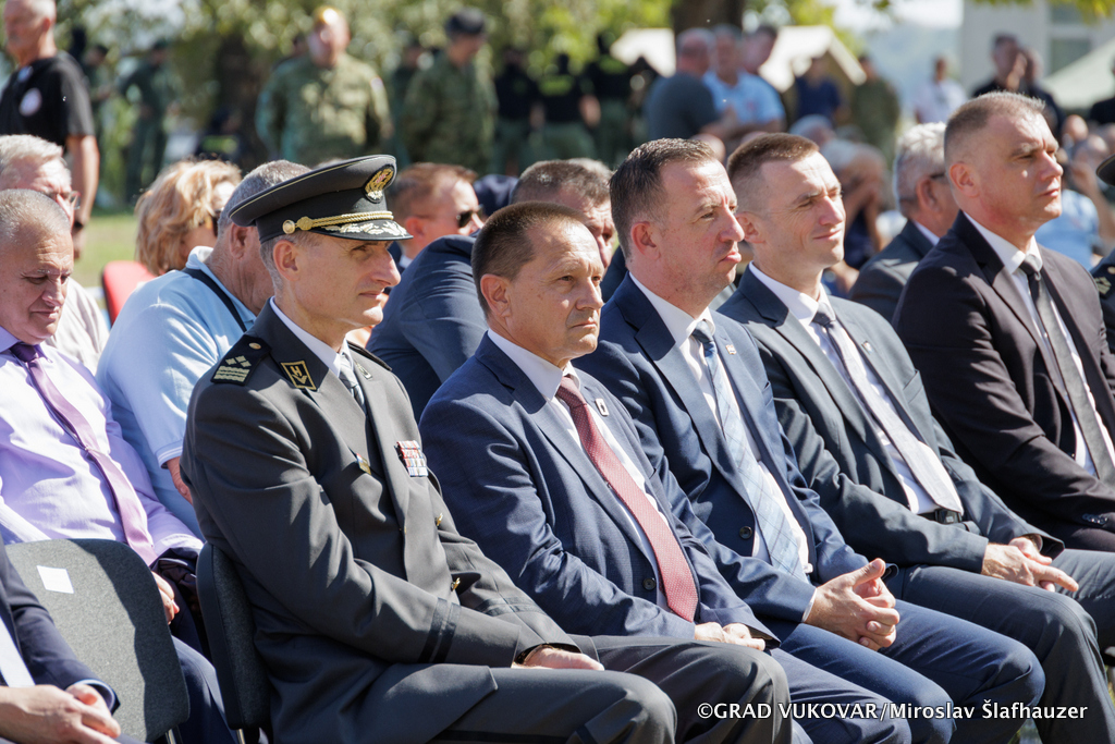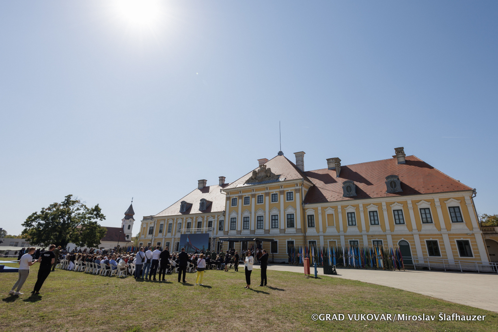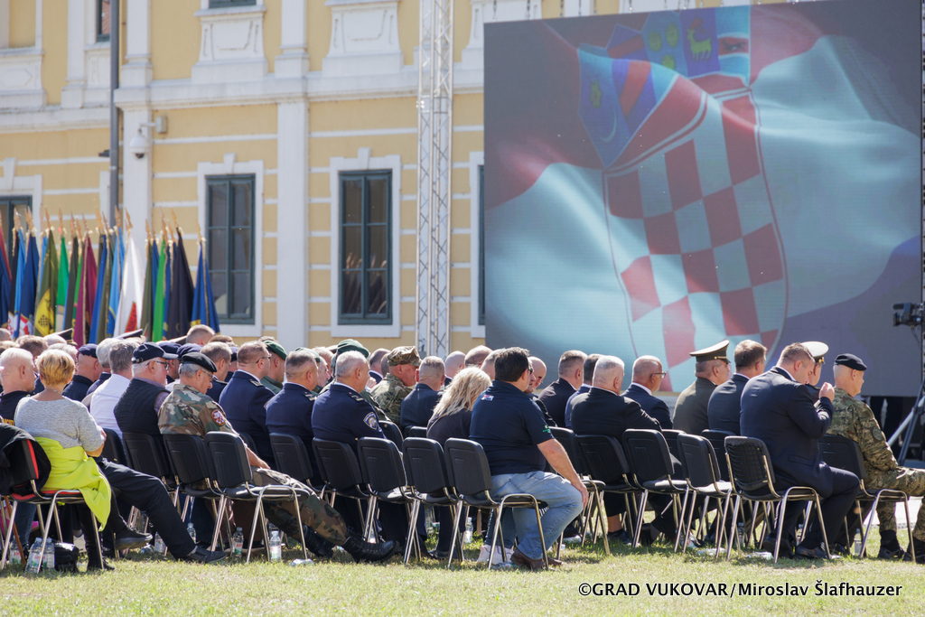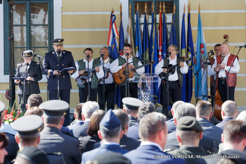 Središnja svečanost u perivoju Dvorca Eltz započela himnom Republike Hrvatske te video prijenosom podizanja zastave Republike Hrvatske na Vukovarskom vodotornju - simbolu hrvatskog zajedništva te preletom Rafala, a uslijedili su govori visokih uzvanika. Program su glazbenim izvedbama upotpunili Najbolji hrvatski tamburaši koji će u 20:00 sati na šetnici uz Dunav održati koncert te Policijska klapa „Sveti Mihovil“.