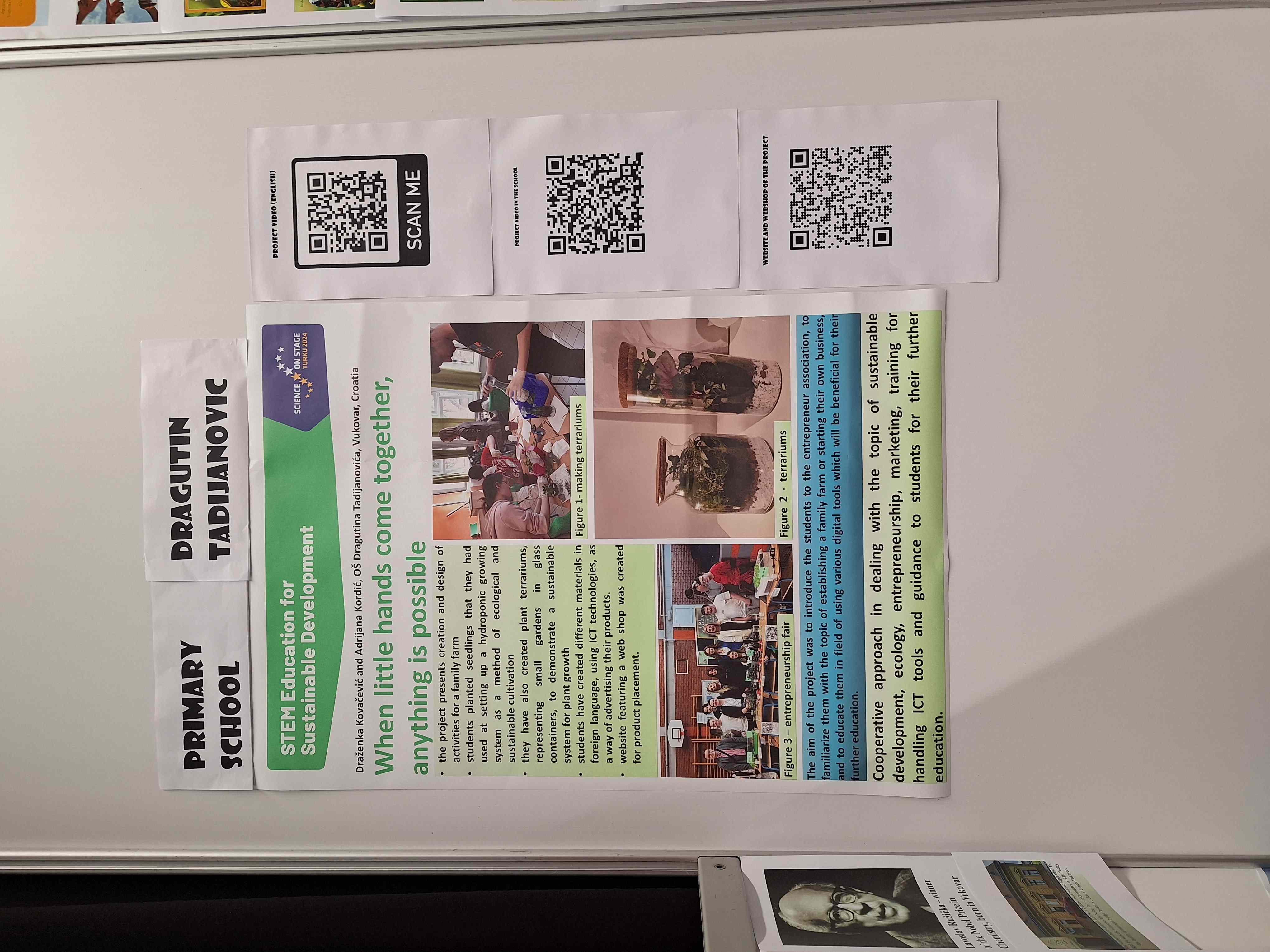 Kao kruna njihovog rada, projekt je izabran među četiri koja su predstavljala Hrvatsku na festivalu Science on Stage Europe u Turku, gdje su sudjelovali učitelji iz 35 zemalja. Festival je okupio oko 450 učitelja iz cijele Europe, a hrvatski projekt je izazvao velik interes svojim inovativnim pristupom obrazovanju i poduzetništvu.