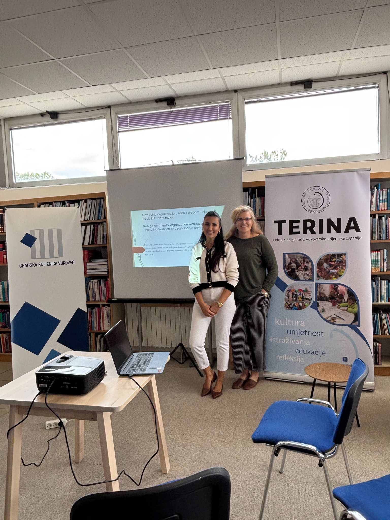 Prvog dana, 30. rujna 2025., gošće su boravile u objektu Leptirić, gdje su promatrale svakodnevni odgojno-obrazovni rad i sudjelovale u aktivnostima s djecom. U poslijepodnevnim satima, u Gradskoj knjižnici Vukovar – ogranak Borovo naselje, prisustvovale su predavanju Udruge odgojitelja Terina na teme “Nevladina organizacija u radu s djecom – njegujući tradiciju i održivi razvoj” i “Didaktičke igre i igračke za igru na vanjskom prostoru”, a potom su pokazale svoju kreativnost na radionici izrade igračaka za vanjski prostor.