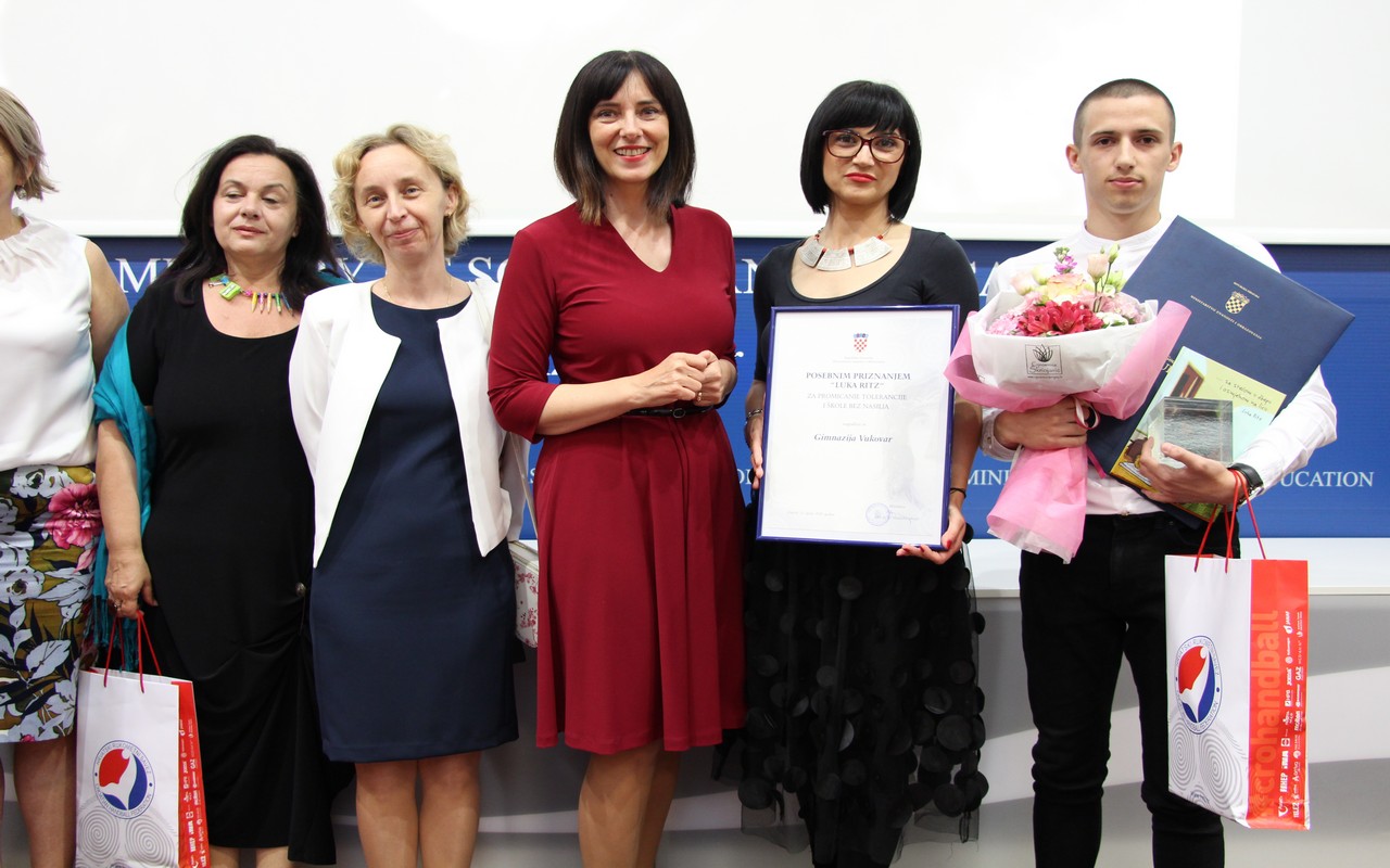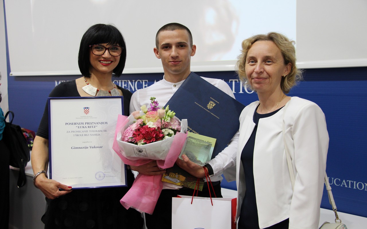 Na svečanosti u Ministarstvu znanosti i obrazovanja 12. lipnja 2020. dodijeljene su godišnje Nagrade “Luka Ritz”. Nagrada se dodjeljuje jednom učeniku osnovne škole i jednom učeniku srednje škole. Ova hvalevrijedna nagrada za promicanje tolerancije i škole bez nasilja, koju dodjeljuje Ministarstvo znanosti i obrazovanja, pripala je vukovarskom gimnazijalcu Luki Prce za ostvarena postignuća u promicanju tolerancije, humanoga i nenasilnoga ponašanja te pozitivnoga odnosa među učenicima i odraslim osobama.