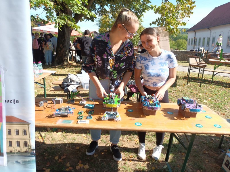 Budući je Znanstveni piknik projekt popularizacije znanosti i umjetnosti, čiji je glavni cilj promovirati znanost u najširem smislu, ali i zainteresirati mlade ljude za znanost, učenice vukovarske gimnazije, Ema Stankoski Hrgović i Lara Šijanović, uz podršku mentora Davora Šijanovića i mentorice Sanje Pavlović Šijanović, izložile su i predstavile vlastiti mali vozni park kojeg čine tri vozila daljinski upravljana putem Bluetooth glasovnog i manualnog upravljanja te upravljana putem NRF24L01 komunikacijskog modula i joystick-a. Vozila su temeljena na bežičnom prijenosu signala principom radijskog prijenosa čiji je utemeljitelj Nikola Tesla. Budući su učenice aktivne sudionice eTwinning projekta: Pristupačnost digitalne tehnologije osobama s posebnim potrebama, izradila su vozila koja mogu koristiti i djeca s teškoćama u razvoju što ih čini ravnopravnim i aktivnim sudionicima odgojno-obrazovnog procesa koji poštuje njihove potrebe, mogućnosti i sposobnosti. Cilj njihova izlaganja je potaknuti učenike na rad sa Arduino tehnologijama kao jednim od kreativnih načina stjecanja novih znanja i vještina, budući sklapanje i programiranje visoko inteligentnih robotskih vozila postaje prediktor razvoja spacijalnih sposobnosti važnih za razumijevanje matematičkih i inženjerskih koncepata koji u kombinaciji s Arduino tehnologijom čine dobitnu kombinaciju.