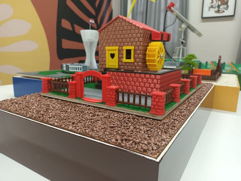 Vodenica: Hidroenergija jedan je od najčešće korištenih obnovljivih izvora energije a prva zabilježena uporaba u Grčkoj od prije 6000 godina ogledala se u sustavima navodnjavanja. Prva hidroelektrana u Hrvatskoj, HE Jaruga na rijeci Krki kod Šibenika, puštena je u pogon 1895., svega dva dana nakon prve hidroelektrane na slapovima Nijagare. Predstavljajući vodenicu, vukovarski su gimnazijalci željeli ukazati na važnost vode kao i na privilegij života uz rijeku Dunav, koja ima poseban značaj za život lokalne zajednice. Izrađena vodenica sadrži mini generator kojega pokreće snaga vode. Okretanjem rotora u generatoru stvara se magnetno polje, nastaje kinetička energija koja žično izlazi u vidu izmjenične struje. Izmjenična struja pretvara se u istosmjernu te se na izlaznim jedinicama dobiva konstantnih 5V za daljnju uporabu uređaja na maketi ili primjerice za punjenje mobilnih uređaja.