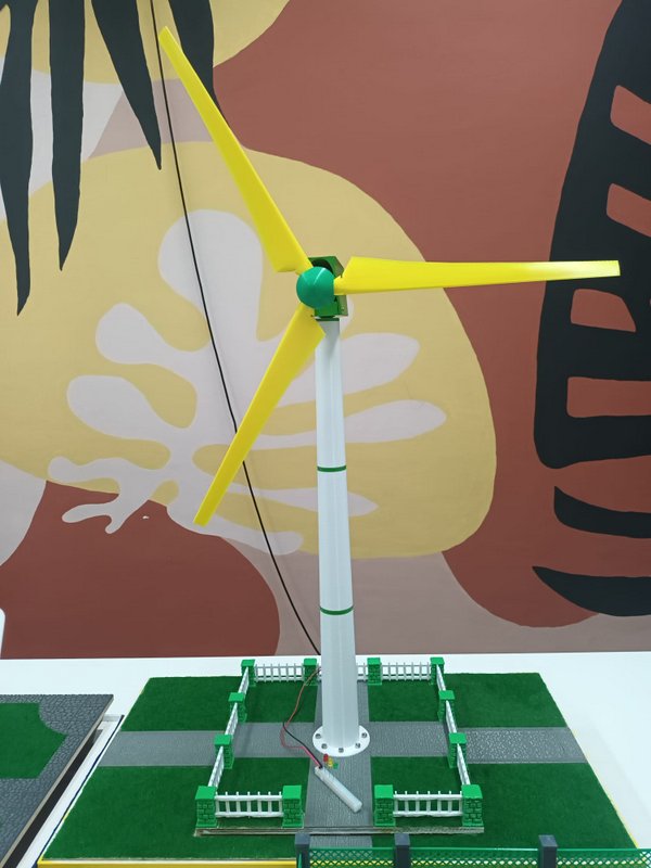 Vjetroelektrana: Snaga vjetra jedan je od najstarijih energetskih izvora koje je koristio čovjek. Među prvima su ju koristili Egipćani za plovidbu a prvu je vjetrenjaču izgradio prof. James Blyth 1887. u Škotskoj. Iskorištavanje energije vjetra na moderan način počelo je 1970-ih godina. Autentična vjetroelektrana u sklopu projekta koristi energiju vjetra kojega pomoću generatora pretvara u izmjeničnu struju. Energija prolazeći kroz elektroničke sklopove pretvara izmjeničnu AC u istosmjernu DC struju te na izlaznoj jedinici USB održava konstantni napon od 5V a također se koristi za pokretanje ostalih uređaja u sklopu projektu. Jedina iznimka od stvarnih prirodnih uvjeta napravljena je za simulaciju vjetra uz pomoću ventilatora.
