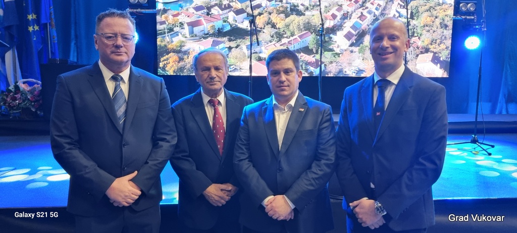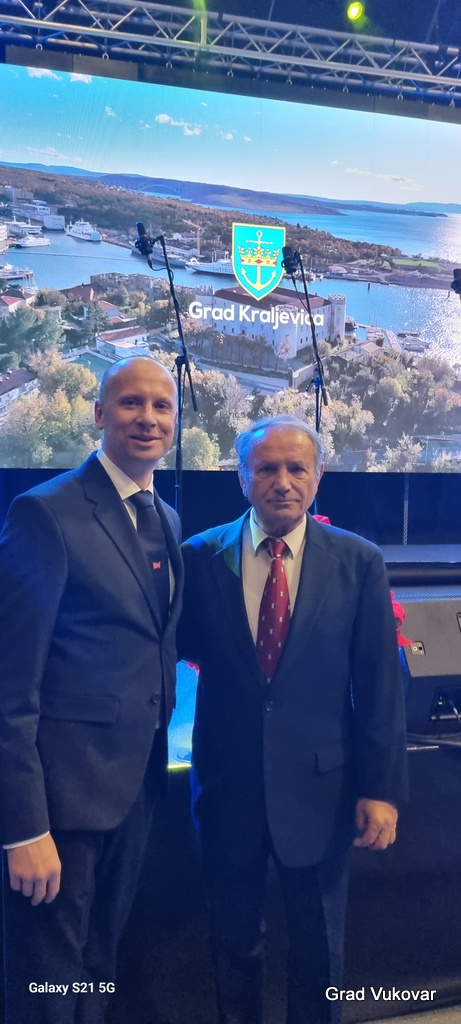 Na zajedničkoj fotografiji su redom domaćin, gradonačelnik Kraljevice g. Dalibor Čandrlić, potpredsjednik Vlade i ministar mora, prometa i infrastrukture g. Oleg Butković, predsjednik Gradskoga vijeća Grada Vukovara g. Željko Sabo te predsjednik Gradskoga vijeća Grada Kraljevice g. Božidar Sotošek. Na pojedinačnoj fotografiji su g. Sotošek i g. Sabo.